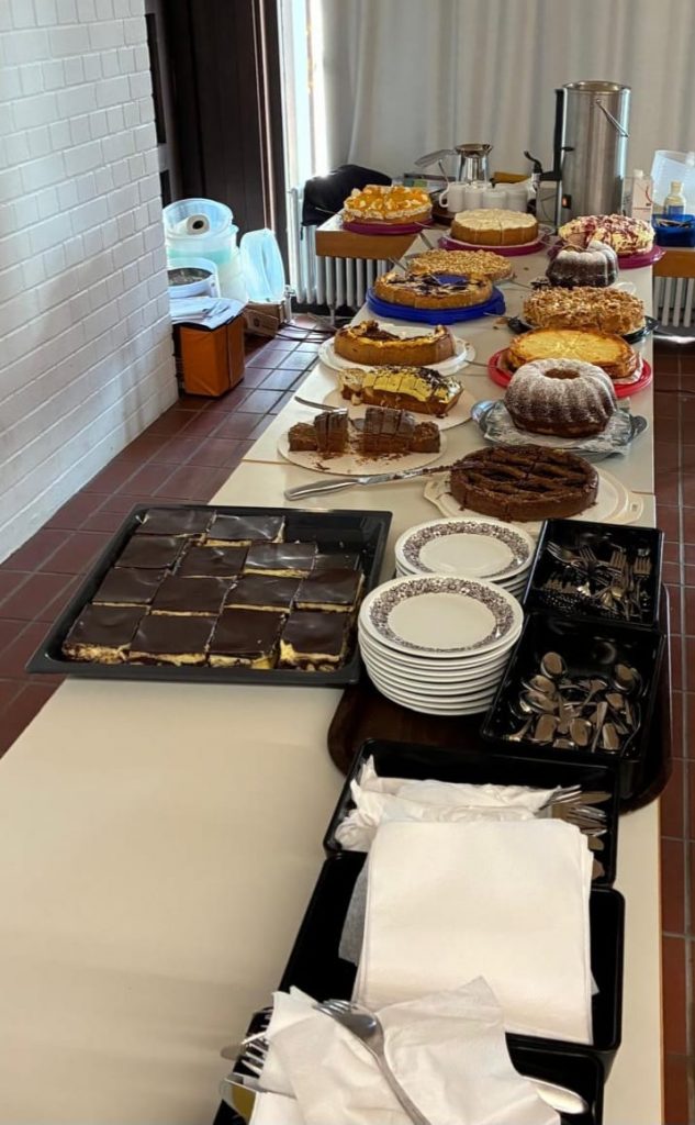 Bei der anschließenden Siegerehrung im Foyer der Halle konnten die Jungs aus Durlach-Aue unter dem Jubel der zahlreichen Zuschauer den Pokal und einen Geldpreis für die beste Leistung bei diesem Turnier in Empfang nehmen. Auch die nächstplatzierten Mannschaften erhielten Geldpreise und den Applaus der Anwesenden. Beim anschließenden gemütlichen Ausklang wurden manche Freundschaften aufgefrischt und der Zusammenhalt unter den „älteren“ Herren gestärkt. Die Helfer(innen) aus unserer AH hatten in der Küche, am Buffet und am Zapfhahn einige Arbeit. Herzlichen Dank an Alle, die mit dazu beigetragen haben, dass es ein gelungenes Turnier wurde. Die Spieler und unsere Gäste hatten den ganzen Nachmittag die Auswahl am großen Kuchenbuffet, Schnitzel mit Kartoffelsalat, sowie anderen Speisen aus der AH-Küche.